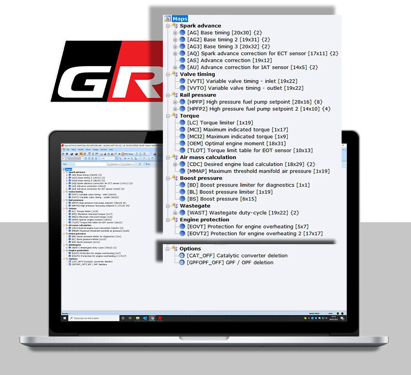 With this development you have everything you need to have fun with tuning the Toyota Yaris GR (GXPA16): get comfortable and rely on the New Genius stand-alone console for every intervention. Work in total safety and reliability and manage the modification with the Race Evo recalibration platform.