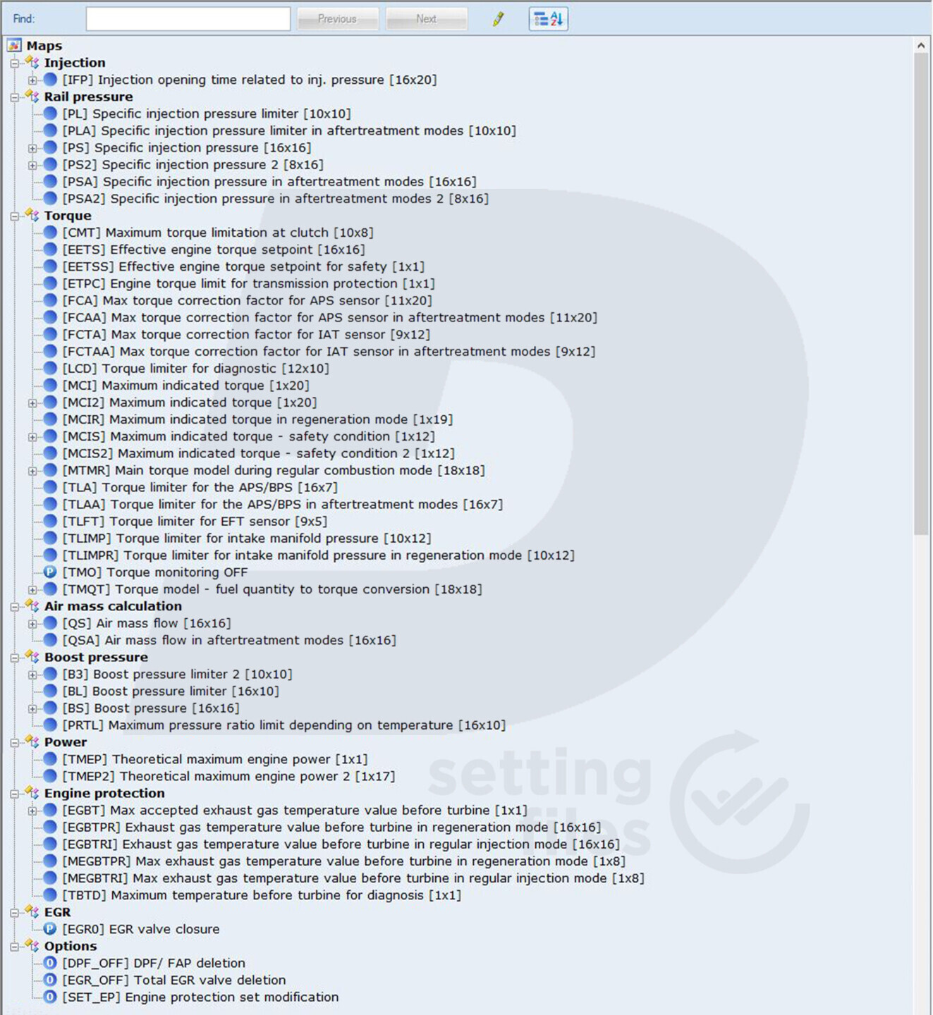 The essential structure of the settings file for BOSCH EDC17C42 ECU