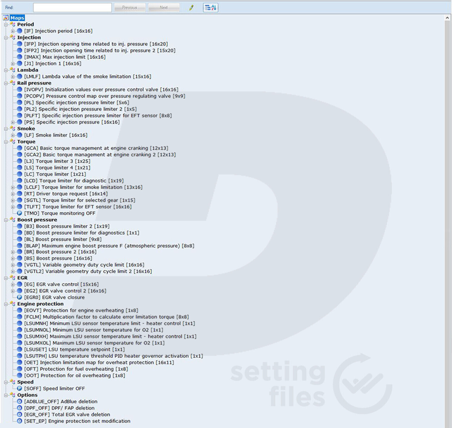 The essential structure of the settings file for BOSCH EDC17C79 ECU (184 KW)