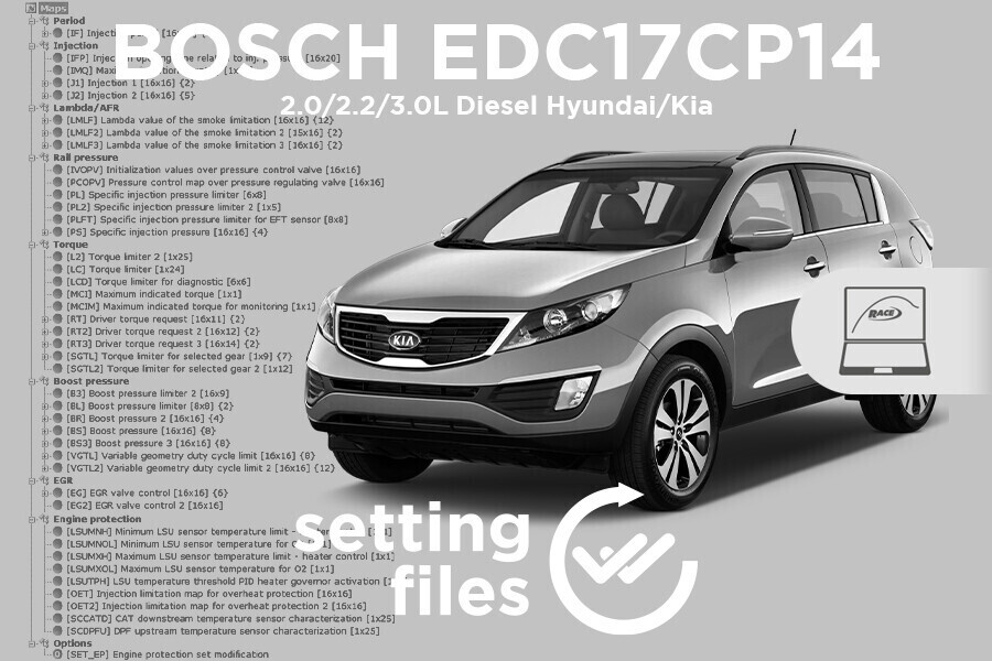 Today we make available new second generation settings files to get the most out of your calibrations on BOSCH EDC17CP14 ECUs, installed on Hyundai/Kia group vehicles, on 2.0/2.2/3.0 diesel engines.