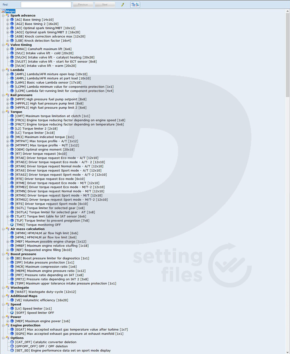 The essential structure of the settings file for BOSCH MG1CS201 ECU