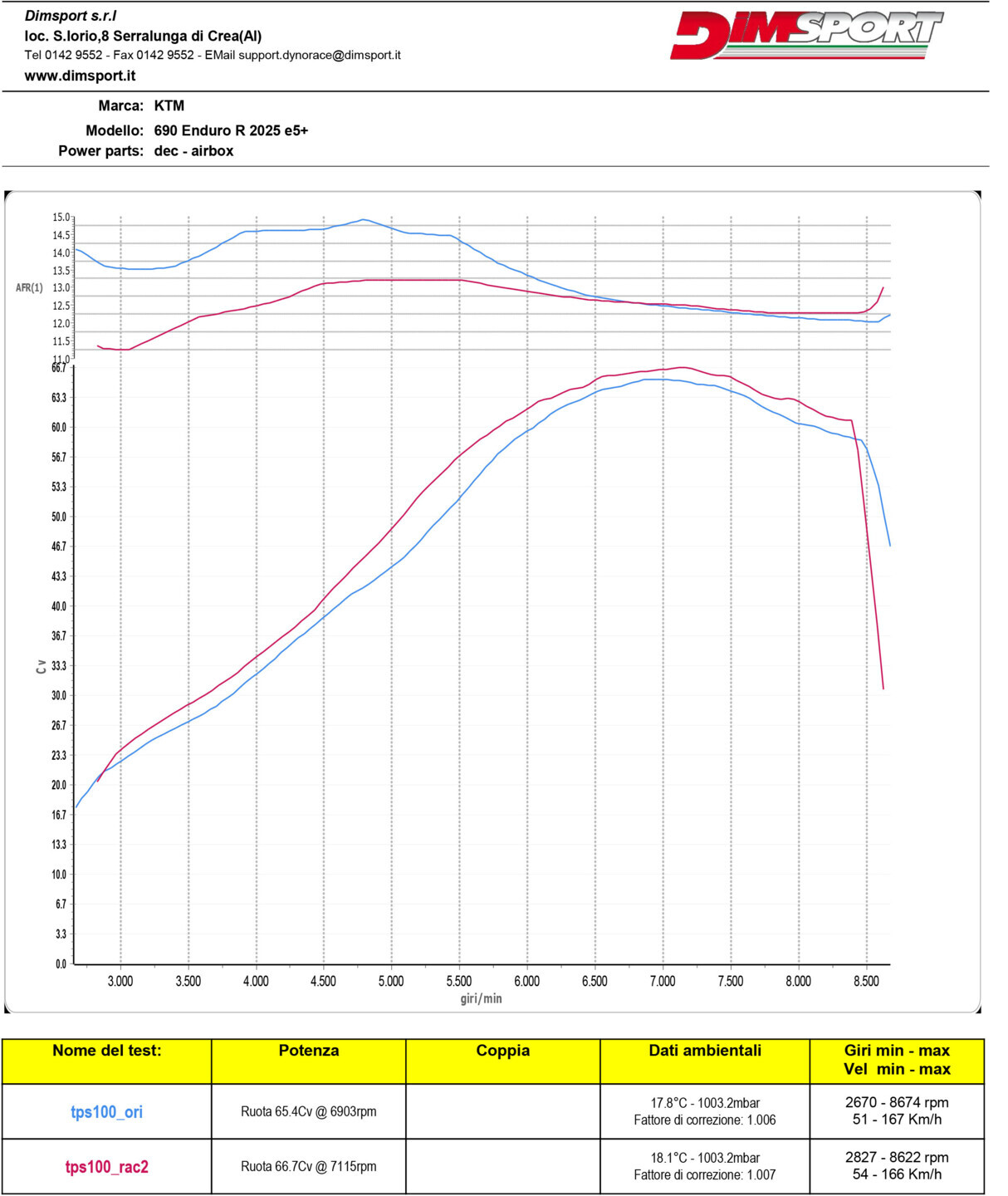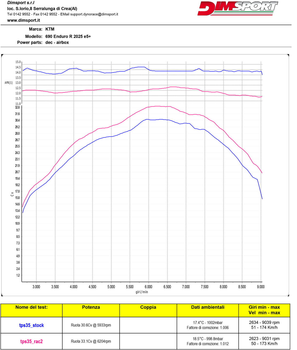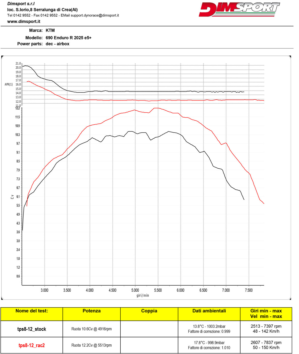 From a technical standpoint, the AFR graph highlights an improvement of fueling  management reaching more consistent values ​​under different load conditions.