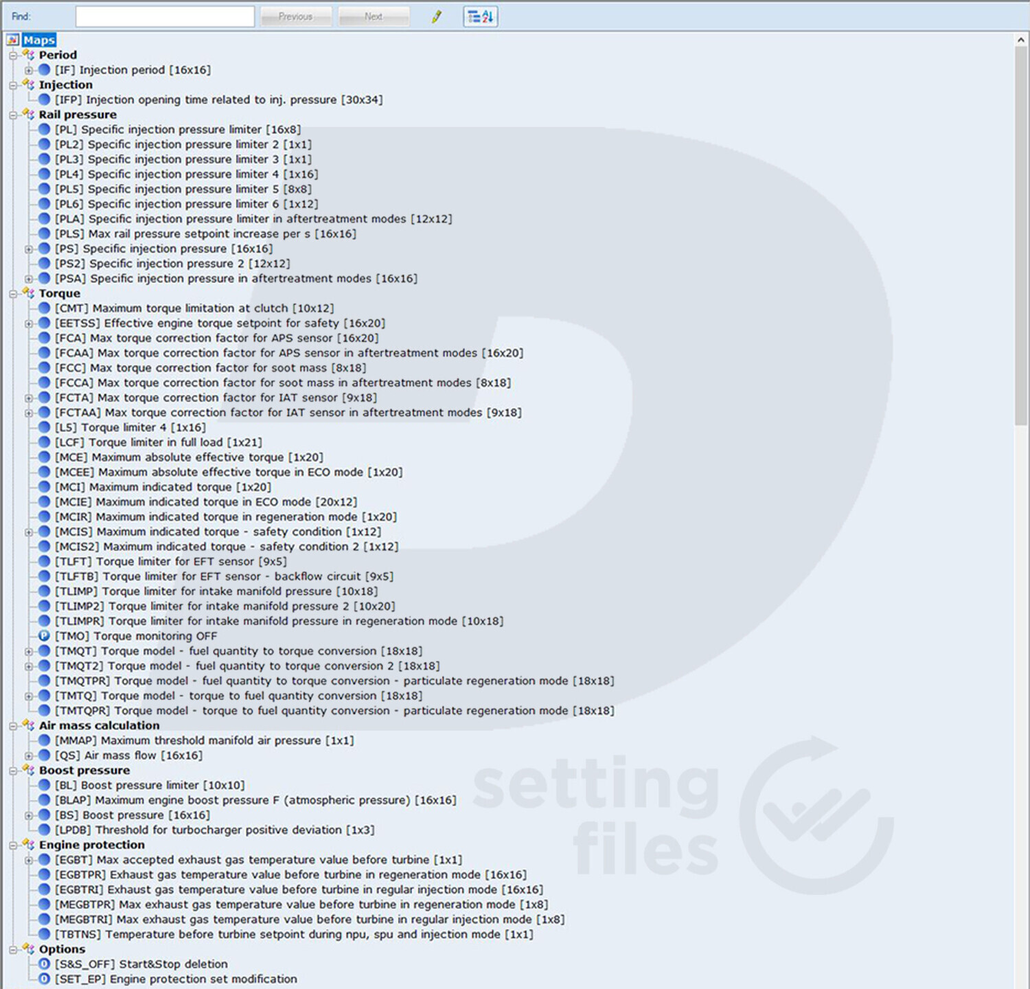 The essential structure of the settings file for BOSCH MD1CS006 ECU