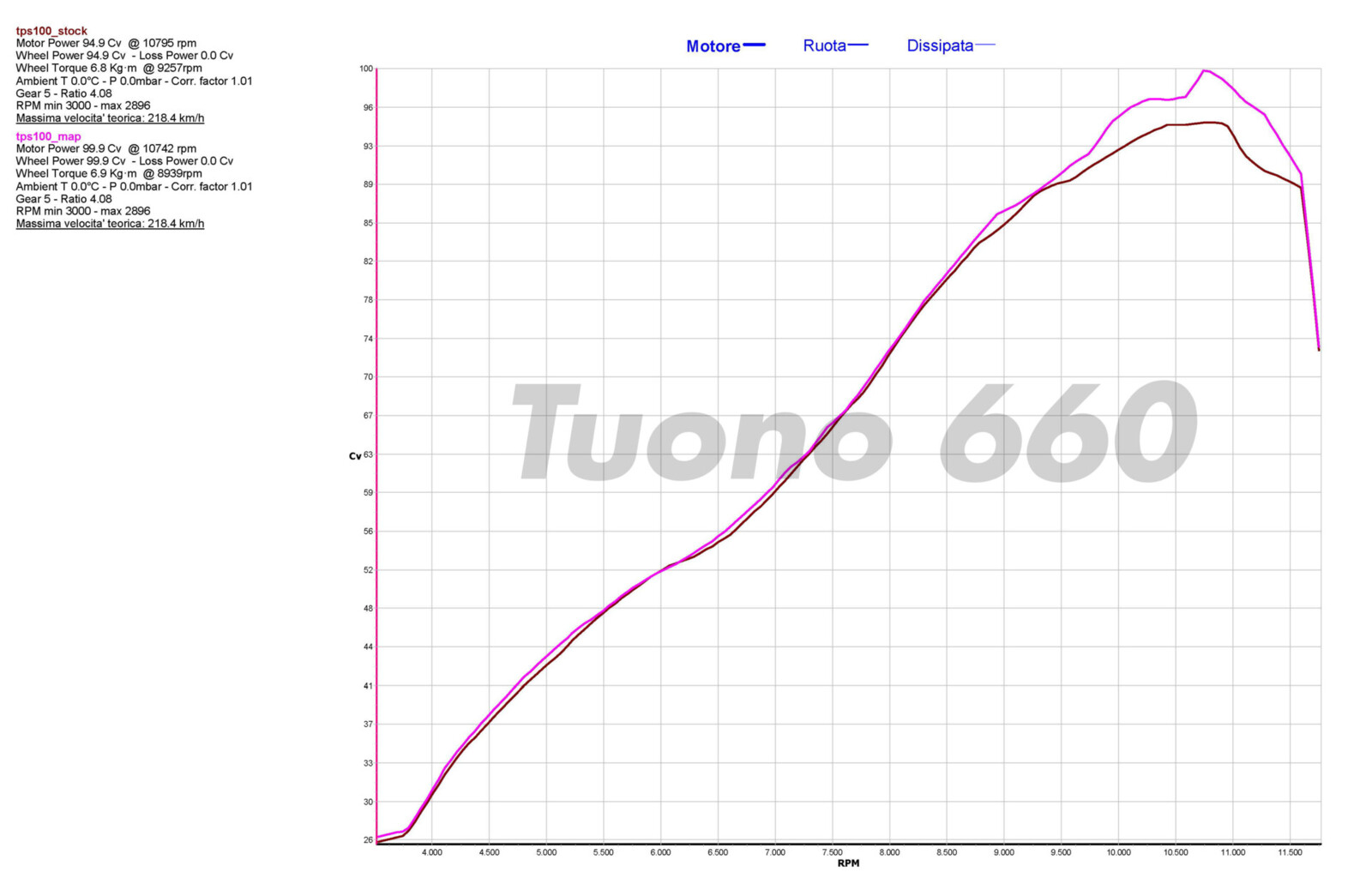 Salta immediatamente all'occhio come Rapid Bike Racing su Tuono 660 abbia incrementato di ben 5cv la potenza massima: un risultato a dir poco stupefacente considerando il rapporto peso/potenza della moto, che la rende l'ideale per l'uso in pista. Per quanto riguardo la sorella volta al fuoristrada, invece, si ottiene un corposo aumento di prestazioni a tutte le aperture del gas fino ad un massimo di 2,5 cv: per godere di un'erogazione sempre pronta ma adatta ai terreni difficili.