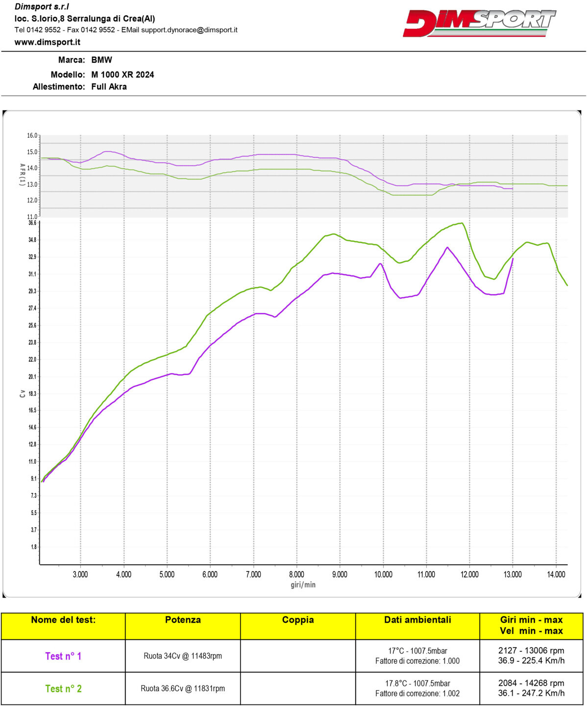 L'installazione del modulo aggiuntivo Rapid Bike Smart ha permesso al motore della fantastica BMW M 1000 XR di migliorare ancora. I tecnici si sono concentrati sui pochi difetti di erogazione presenti nel motore originale; i buchi nell’erogazione sono stati “addolciti” se non addirittura azzerati grazie alla Rapid Bike. L’erogazione diventa molto fluida e lineare. Inoltre, poiché la potenza non è mai troppa, con la nostra Rapid Bike Smart abbiamo ottenuto anche un incremento sia in termini di cavalli che di coppia. Cosa volere di più?