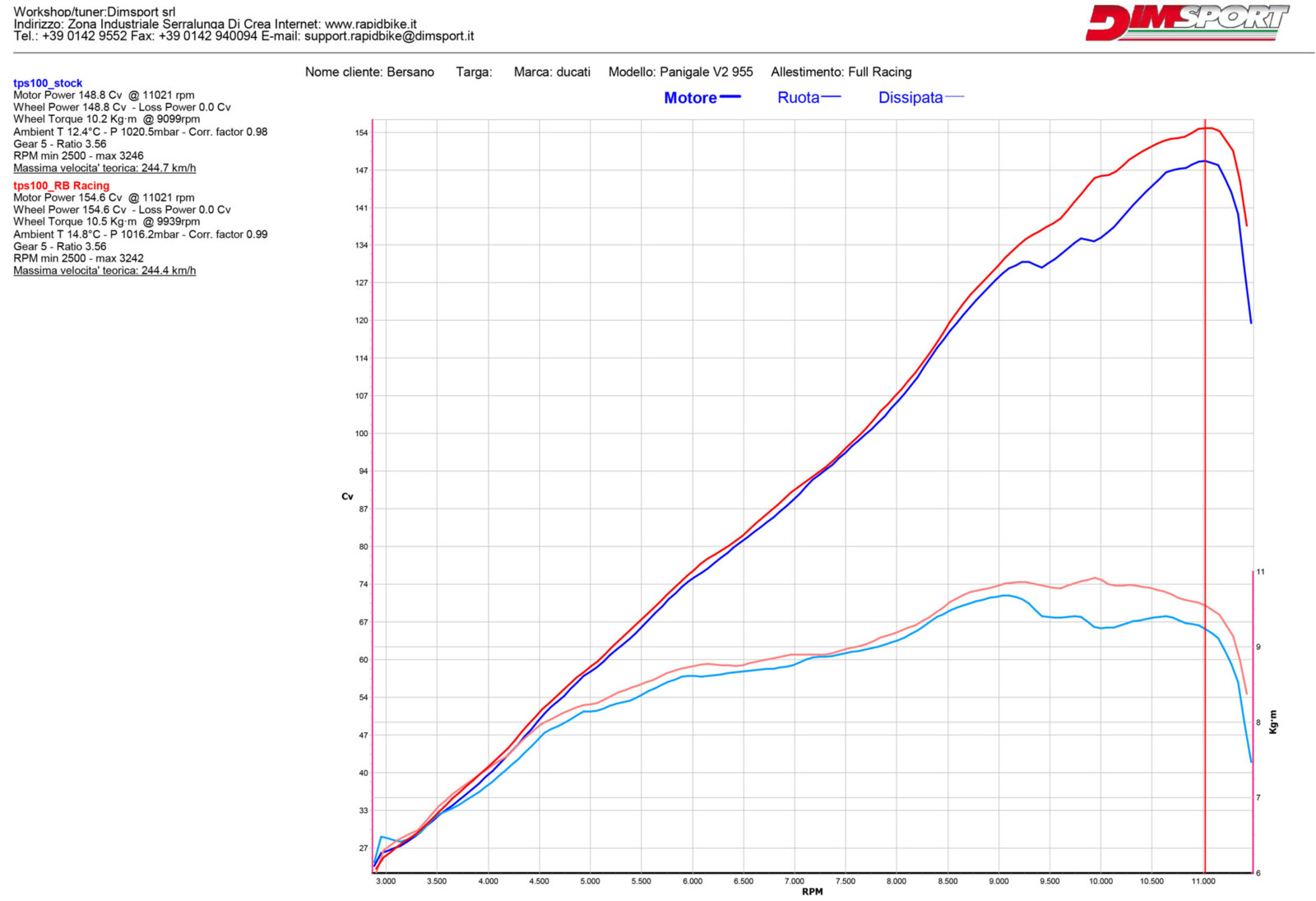Come possiamo vedere dal grafico, l’installazione del modulo aggiuntivo Rapid Bike Racing ha portato ad un miglioramento in termini di erogazione e ad un incremento del rendimento del motore, rendendo questo mezzo ancora più performante.