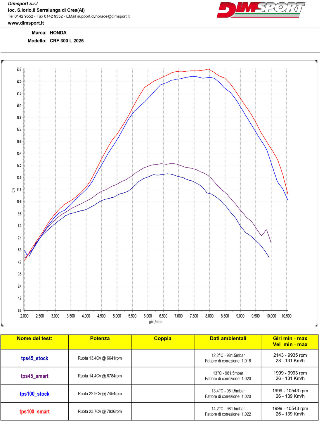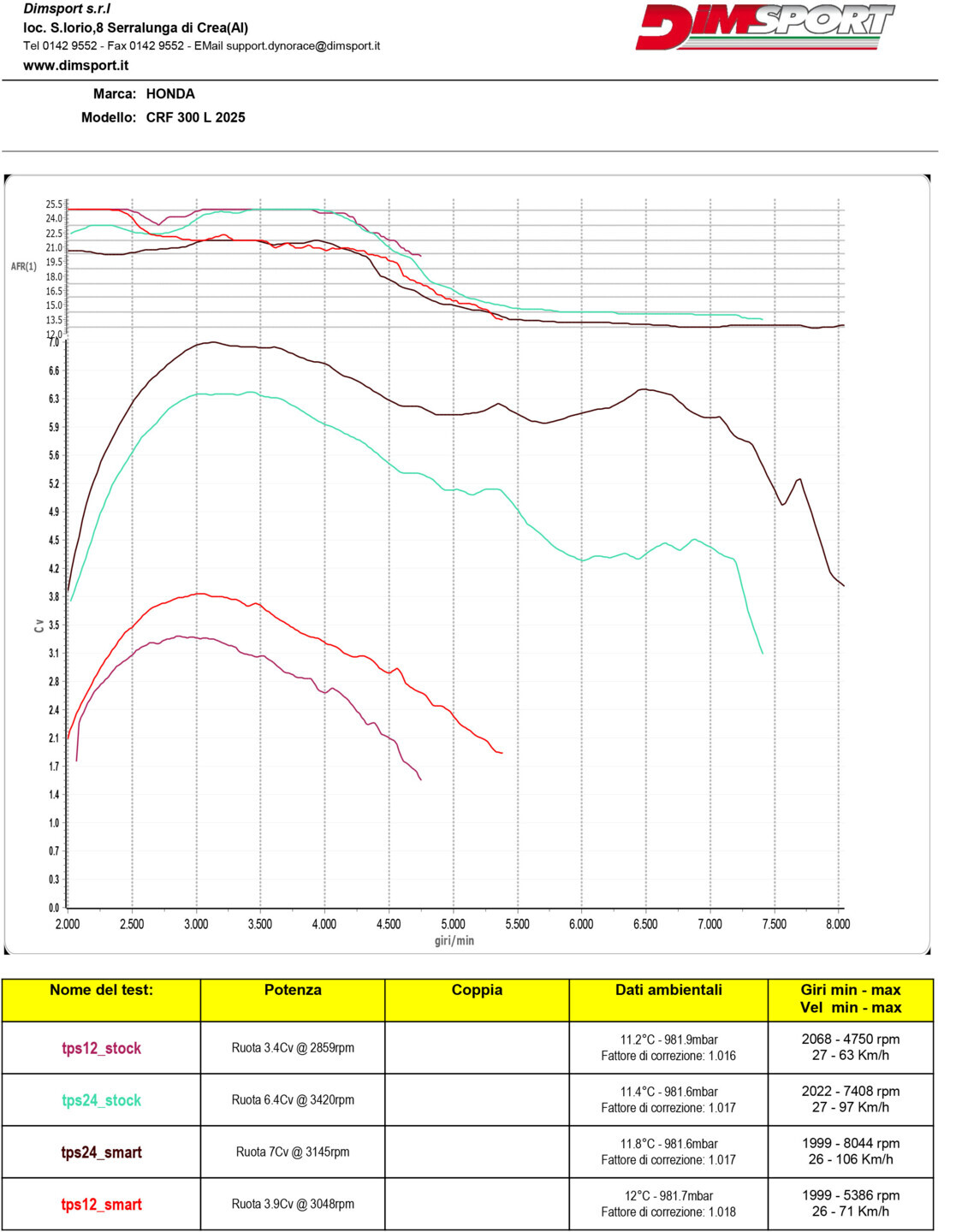 L’installazione della Rapid Bike Smart2 si riflette direttamente sull’erogazione: la curva di potenza appare più piena e lineare, con un incremento misurabile. Oltre a questo, ciò che cambia è la prontezza nella risposta al gas e la sensazione di maggiore spinta già ai bassi e medi regimi.