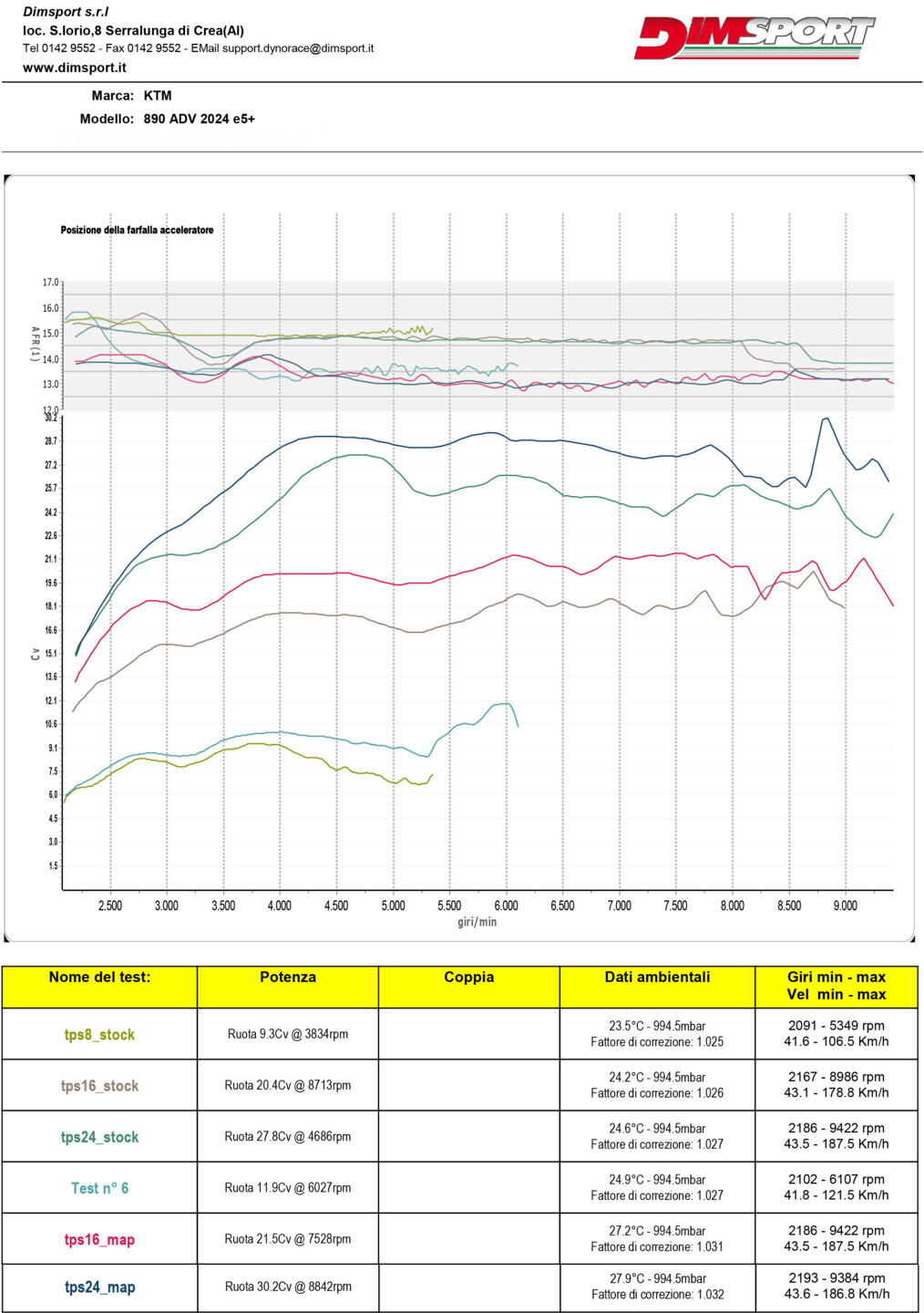 Come si può vedere dai grafici, l’installazione del modulo aggiuntivo ha reso la KTM 890 Adventure sfruttabile al massimo sin dai bassi regimi.