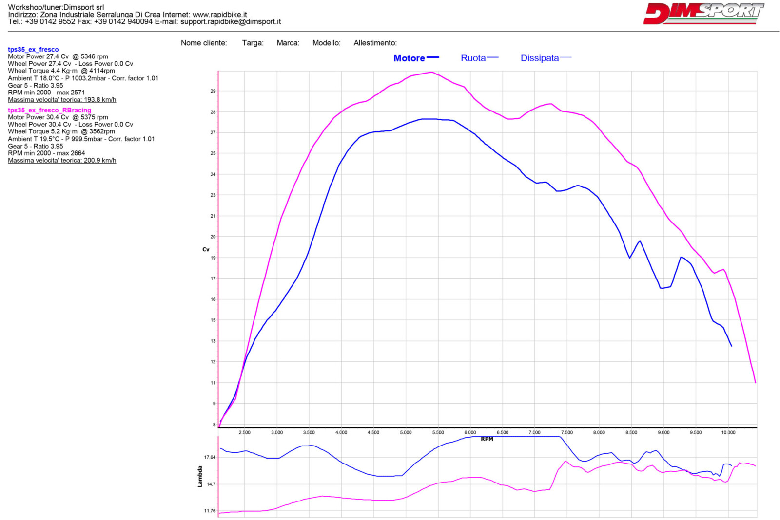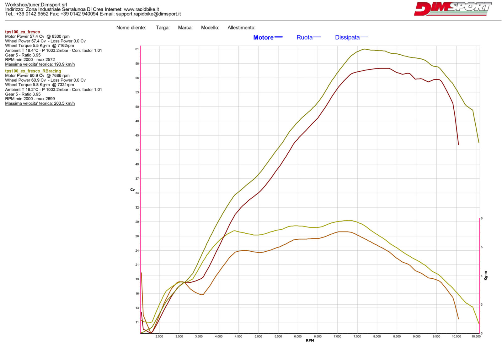 Come possiamo vedere dai grafici la moto, con installata la Rapid Bike Racing, ha un incremento notevole lungo tutto l’arco di erogazione e a diverse andature.