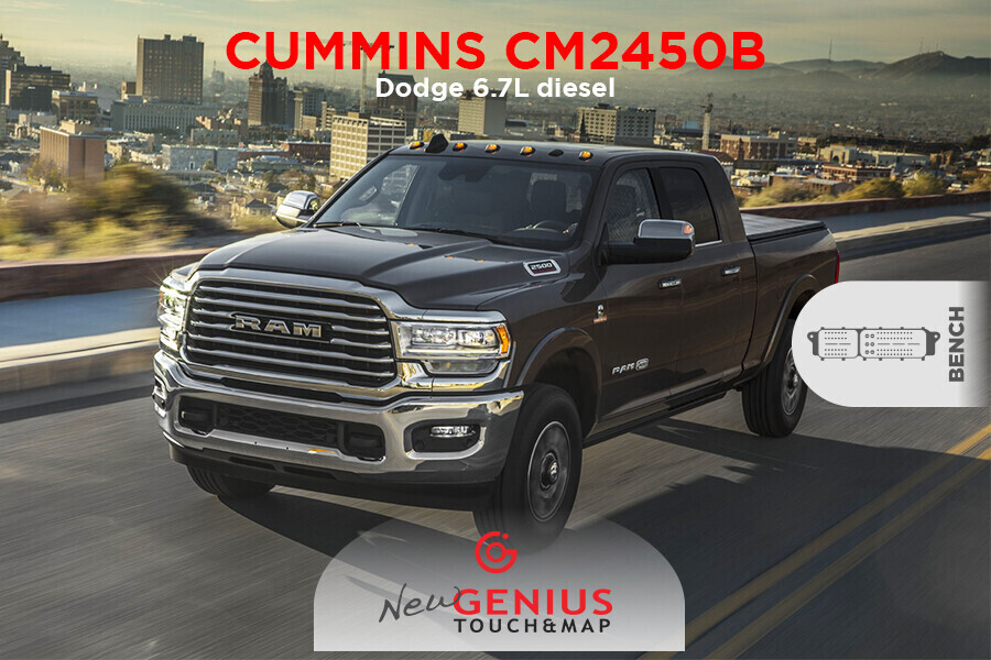 Dimsport da oggi ti abilita all'intervento sull'impianto Cummins CM2450B installato a bordo di Dodge RAM 6.7L MY 2019. Collegati direttamente al connettore della centralina in modalità BENCH con New Genius: leggi e scrivi con la consolle di riprogammazione con la stessa sicurezza e semplicità dell'intervento via OBDII.