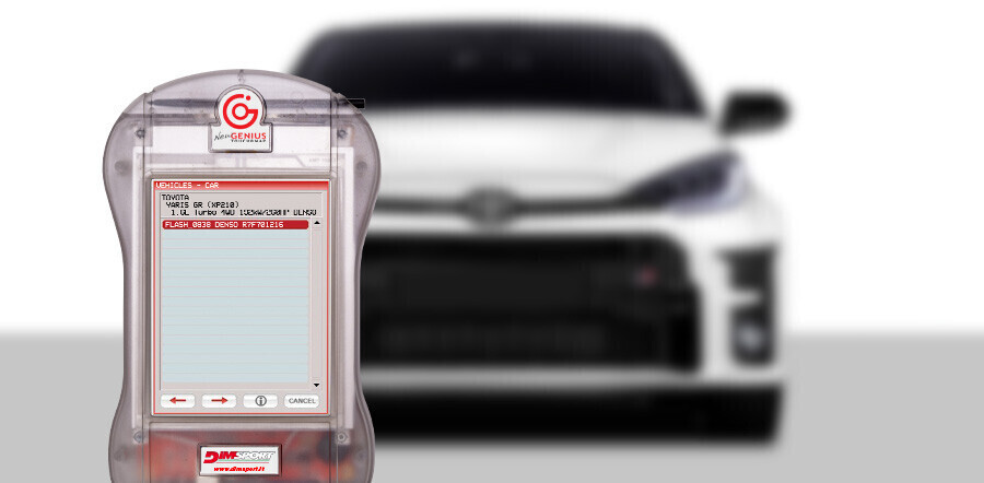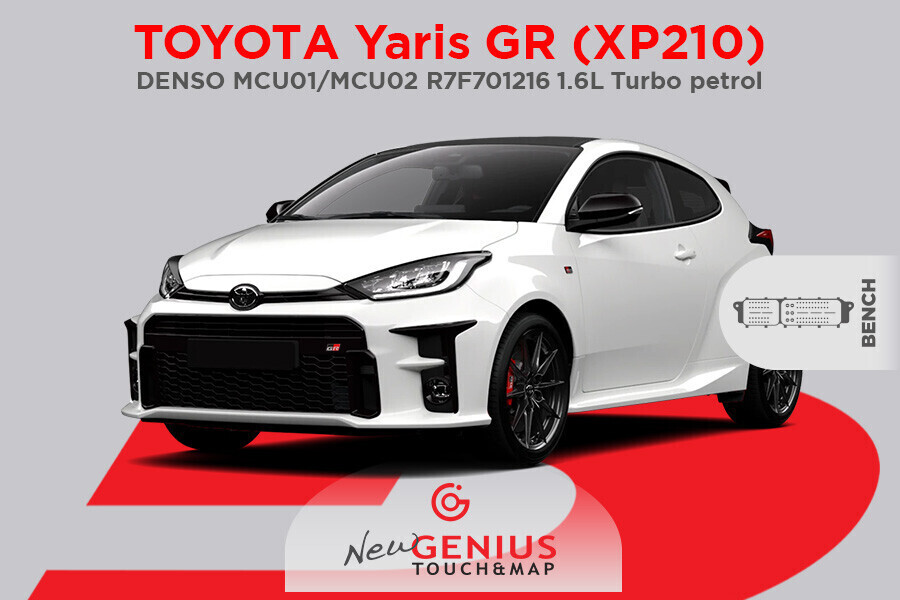Con questo sviluppo hai tutto quello che serve per sbizzarrirti con le calibrazioni sulla Toyota Yaris GR (GXPA16): mettiti comodo e affidati alla consolle stand-alone New Genius per farti guidare nell'intervento. Lavora in totale sicurezza e affidabilità seguendo poche e semplici operazioni e gestisci la modifica con la piattaforma di ricalibrazione Race Evo.