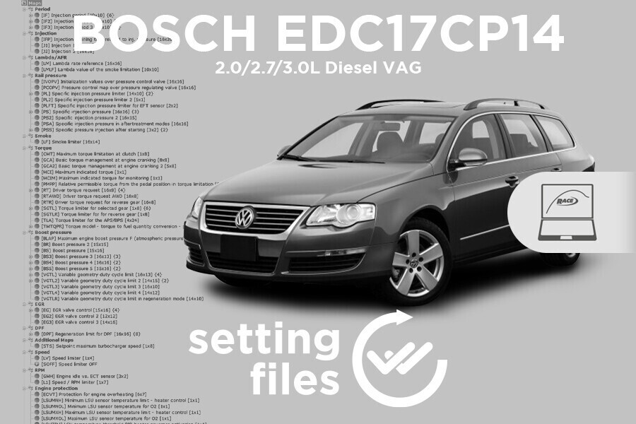Da oggi disponibili i nuovi file di settaggio di seconda generazione per ottimizzare il tuo lavoro quotidiano: ottieni il massimo nelle tue calibrazioni su centraline BOSCH EDC17CP14, installate sui veicoli del gruppo VAG motorizzati 2.0/2.7/3.0 diesel.