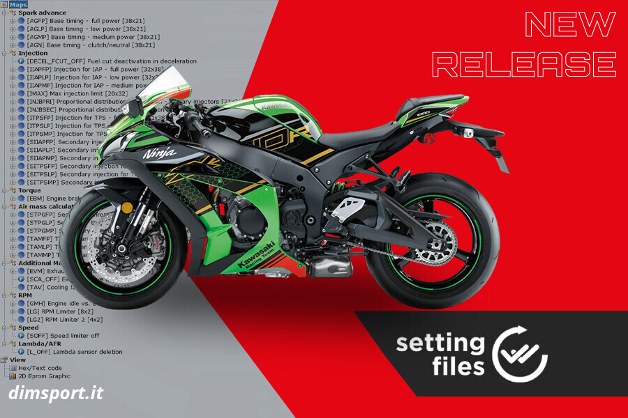 Scopri i nuovi file di settaggio per Kawasaki Ninja ZX-10. Ora puoi rimappare le ECU MITSUBISHI 21175-1432/1433/1436/1439/1455 con parametri di gestione motore completamente aggiornati e ottimizzati.