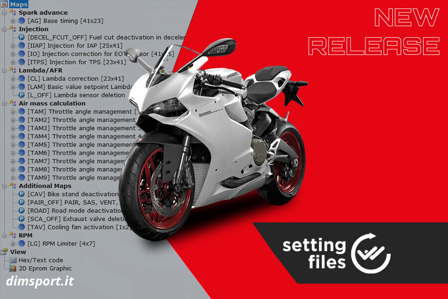 Scarica i nuovi settaggi su Race Evo e utilizza gli strumenti Dimsport per rimappare e massimizzare le prestazioni della piccola "Panigalina"