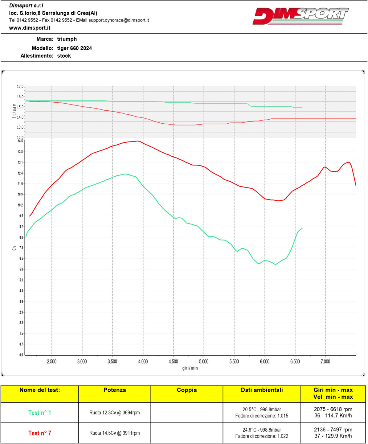 Come possiamo vedere dai grafici infatti, già dai bassi regimi, si ha un miglioramento dell’erogazione che diventa molto più lineare e vengono corretti quei piccoli buchi che la moto ha di serie.