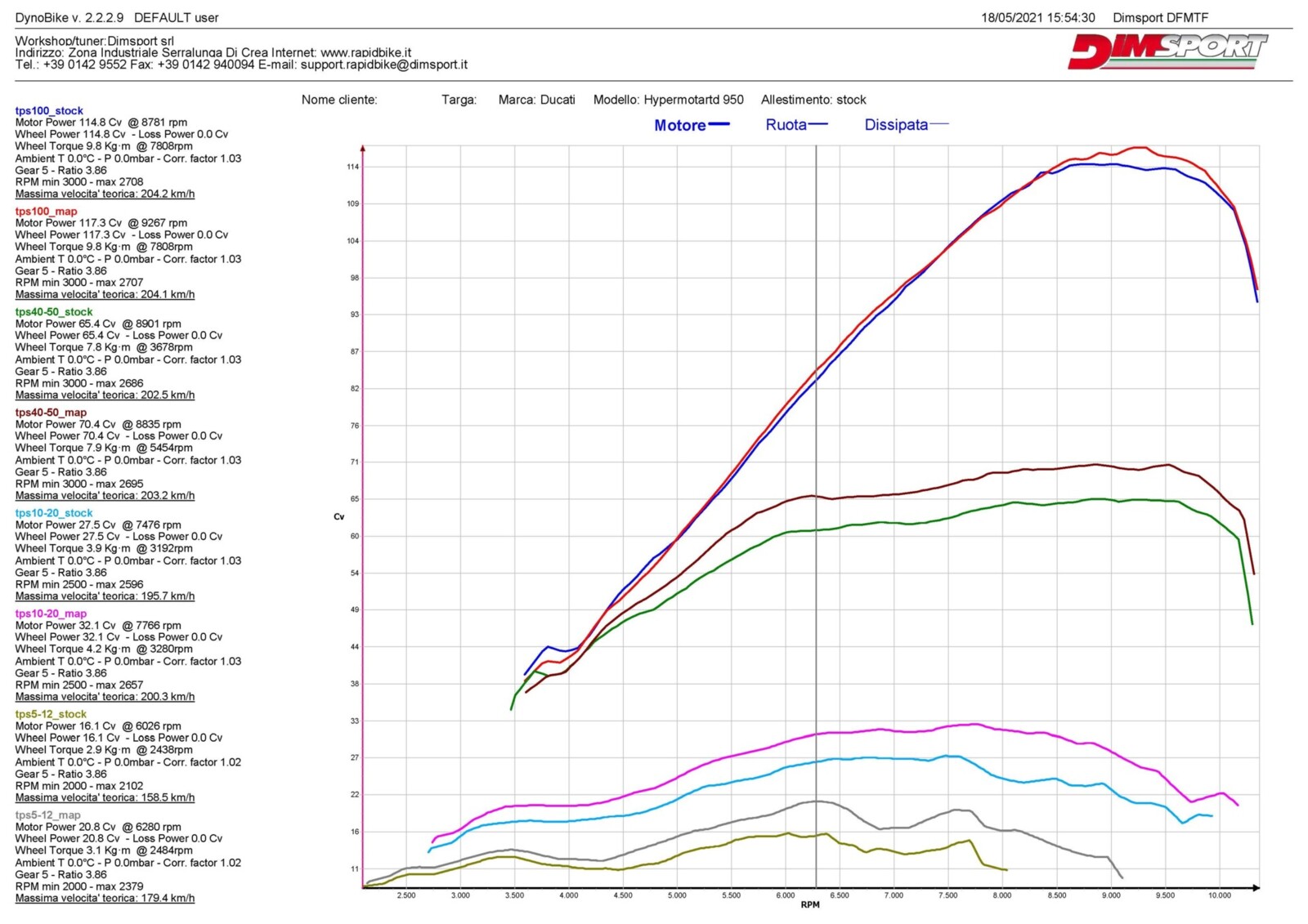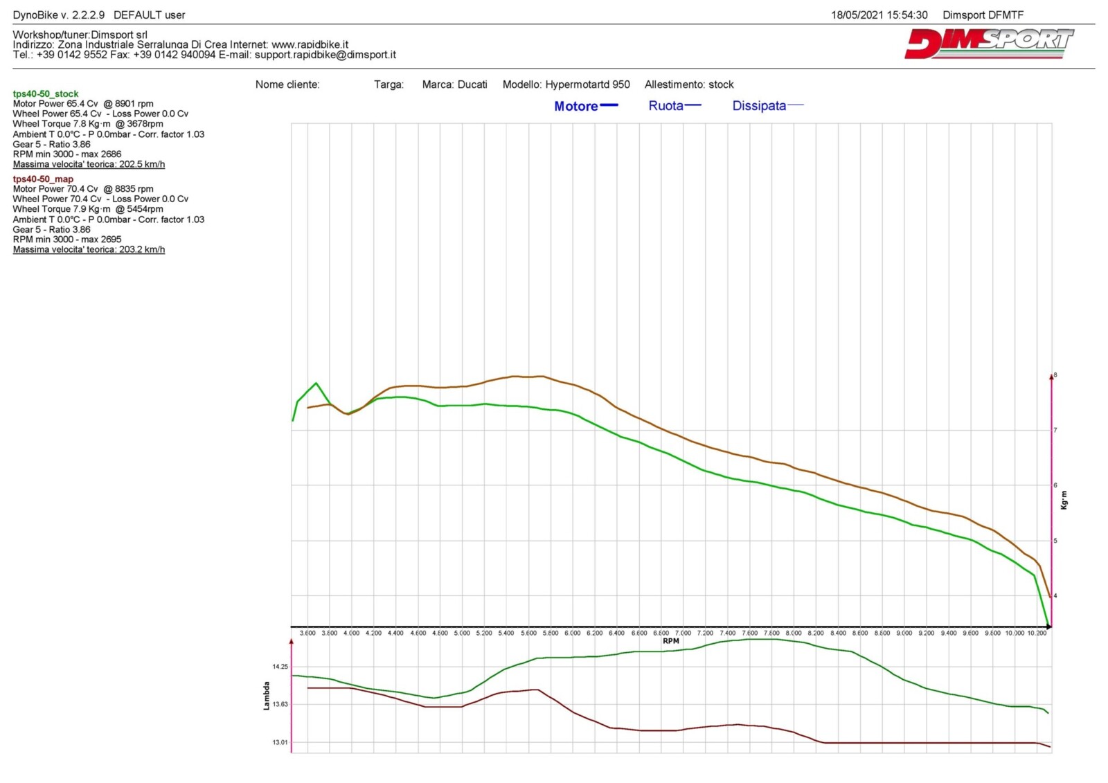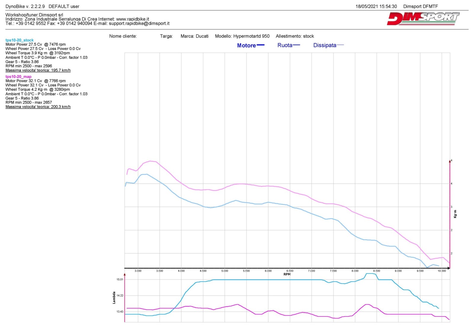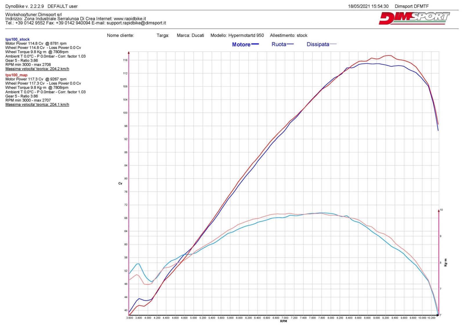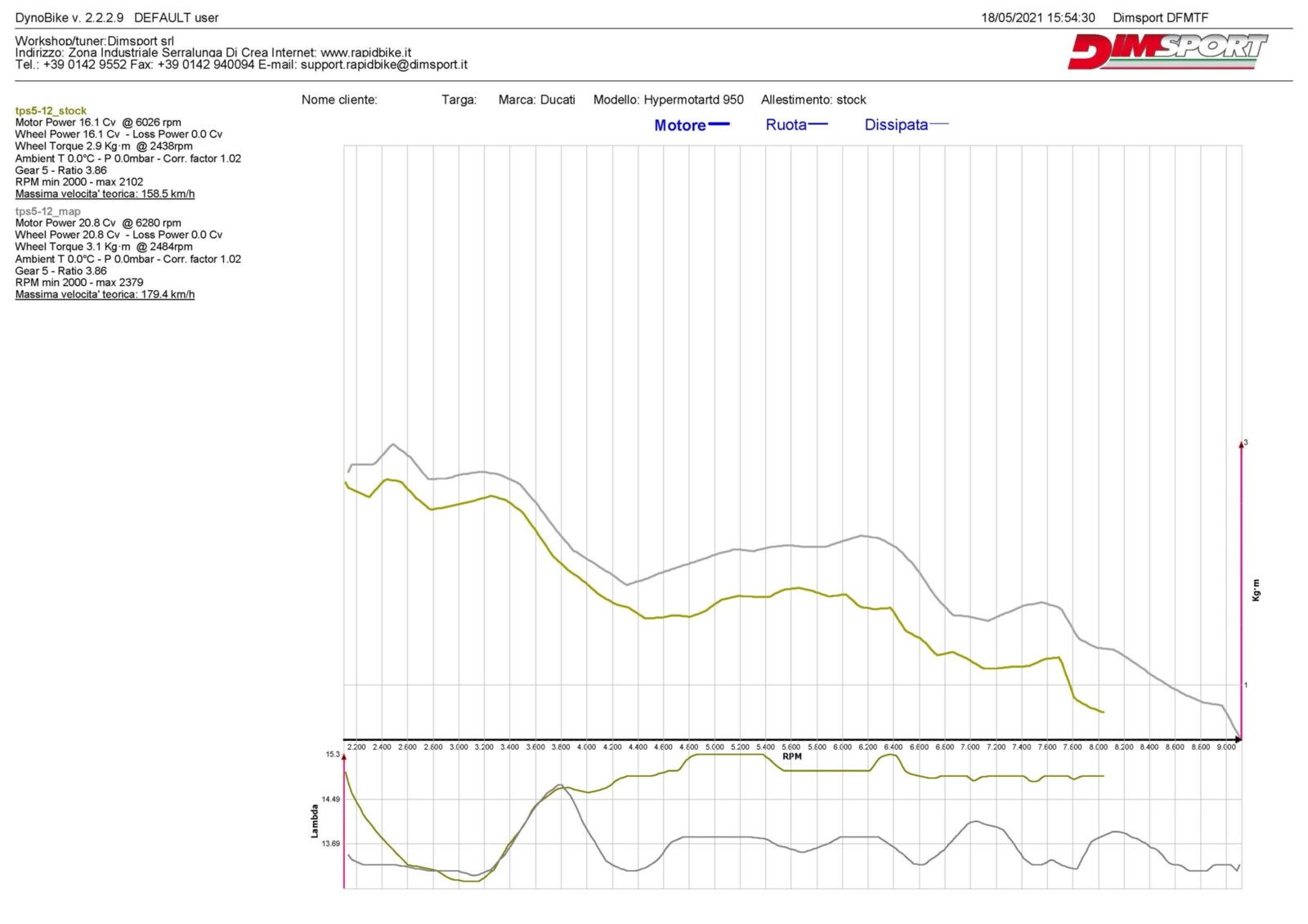 Per effetto delle nuove limitazioni, la nuova edizione del bicilindrico di Iwata ha reso necessario un aggiornamento dei setting di Rapid Bike Evo e Racing. Ma il risultato rispetto all’Euro4 non è cambiato: ai bassi regimi grazie a Rapid Bike Racing si registra un incremento di coppia del 10%, come dimostrano i grafici prodotti dal banco prova Dyno Bike di Dimsport usato per lo sviluppo. Un netto miglioramento dell’erogazione nel primo stadio di apertura del gas consente di agevolare l'utilizzo sui terreni sdrucciolevoli, con maggiore controllo in fase di derapata e una miglior prontezza del motore.
