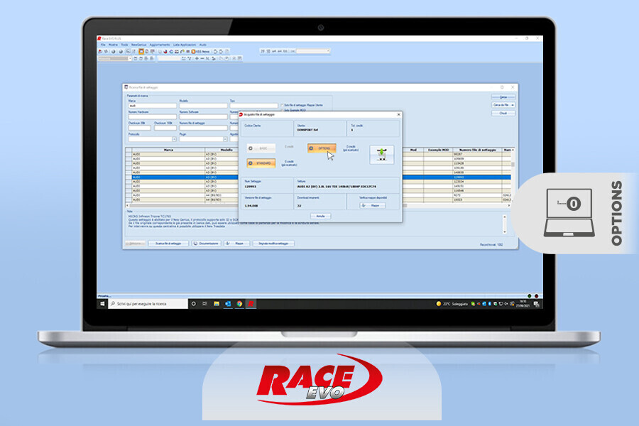 Race Evo introduces new "Options" to extend and complete the Dimsport offer in the field of repair, diagnosis and recalibration: added features that allow simple to activate with immediate effects on the vehicle whenever required by the technology installed on board.