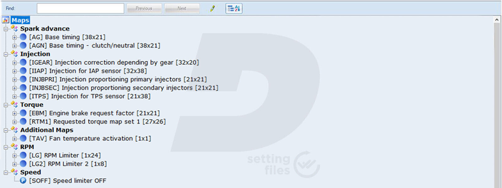 The essential structure of the settings file for MITSUBISHI Kawasaki ECU